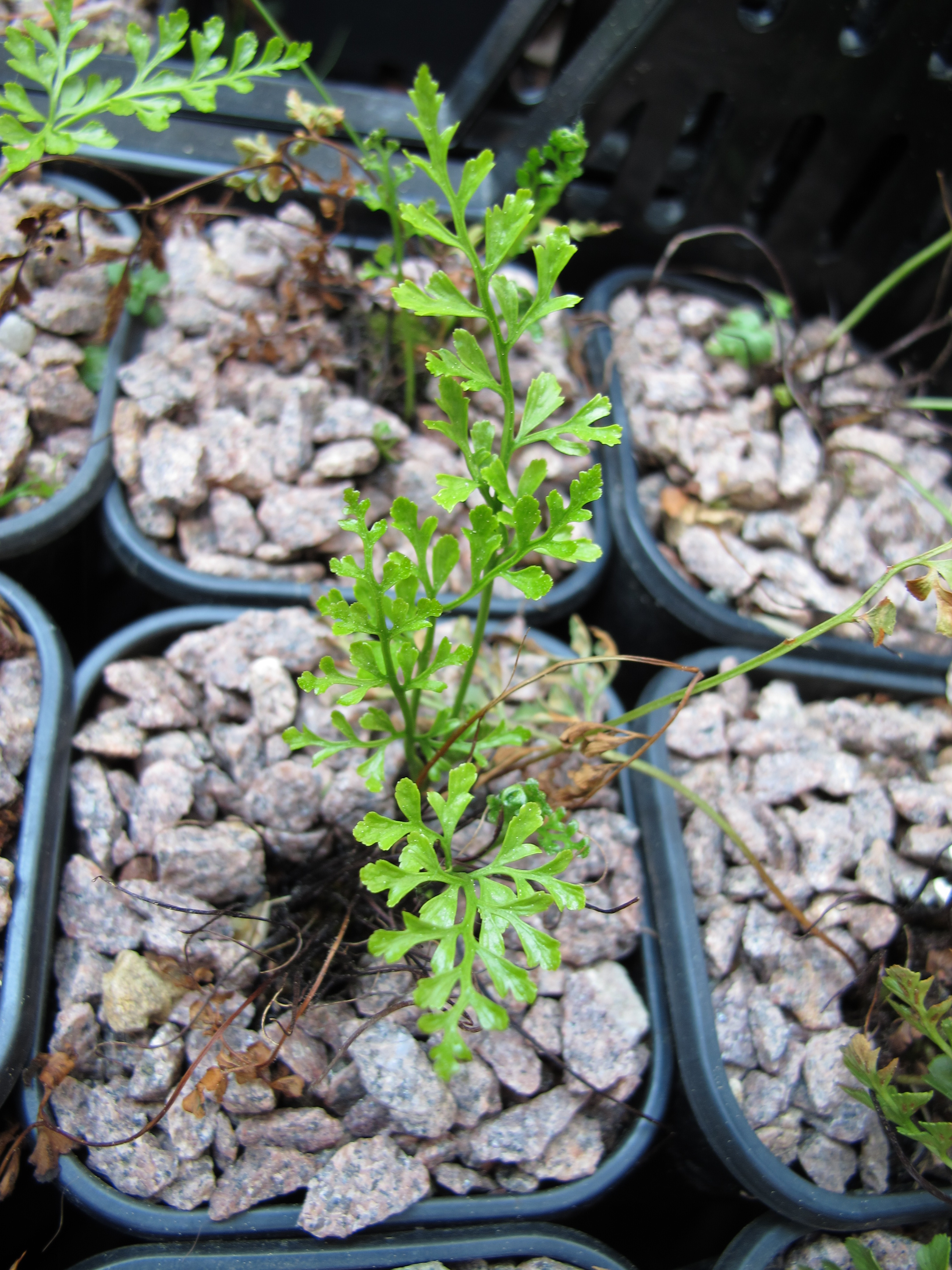 Datei:Asplenium cuneifolium (Serpentin-Streifenfarn in Anzuchttöpchen, S. Jeßen).jpeg