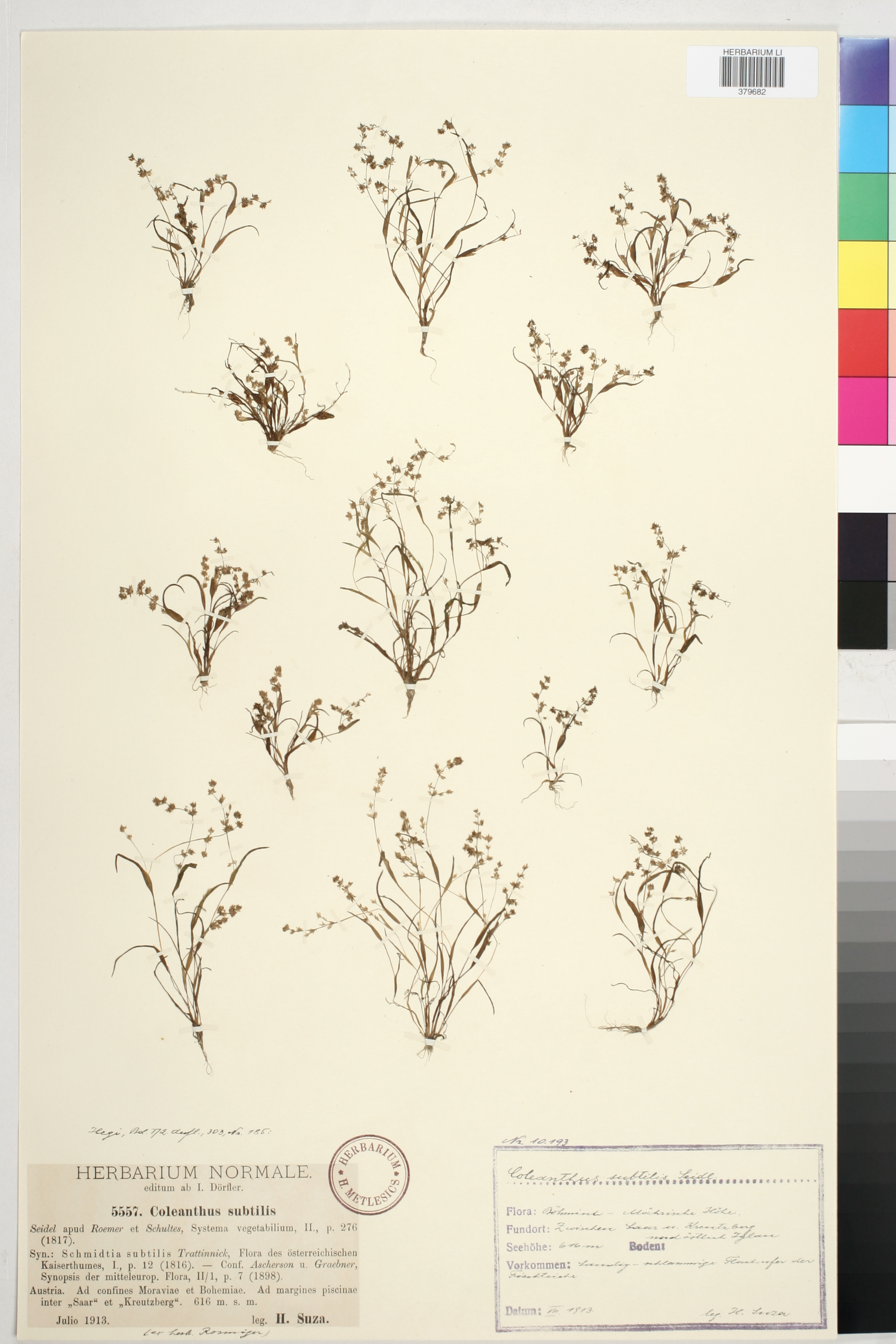 - Herbarbeleg von Coleanthus subtilis Seidel, gesammelt von H. Suza (1913), Flora Böhmisch-Märkische Höhe