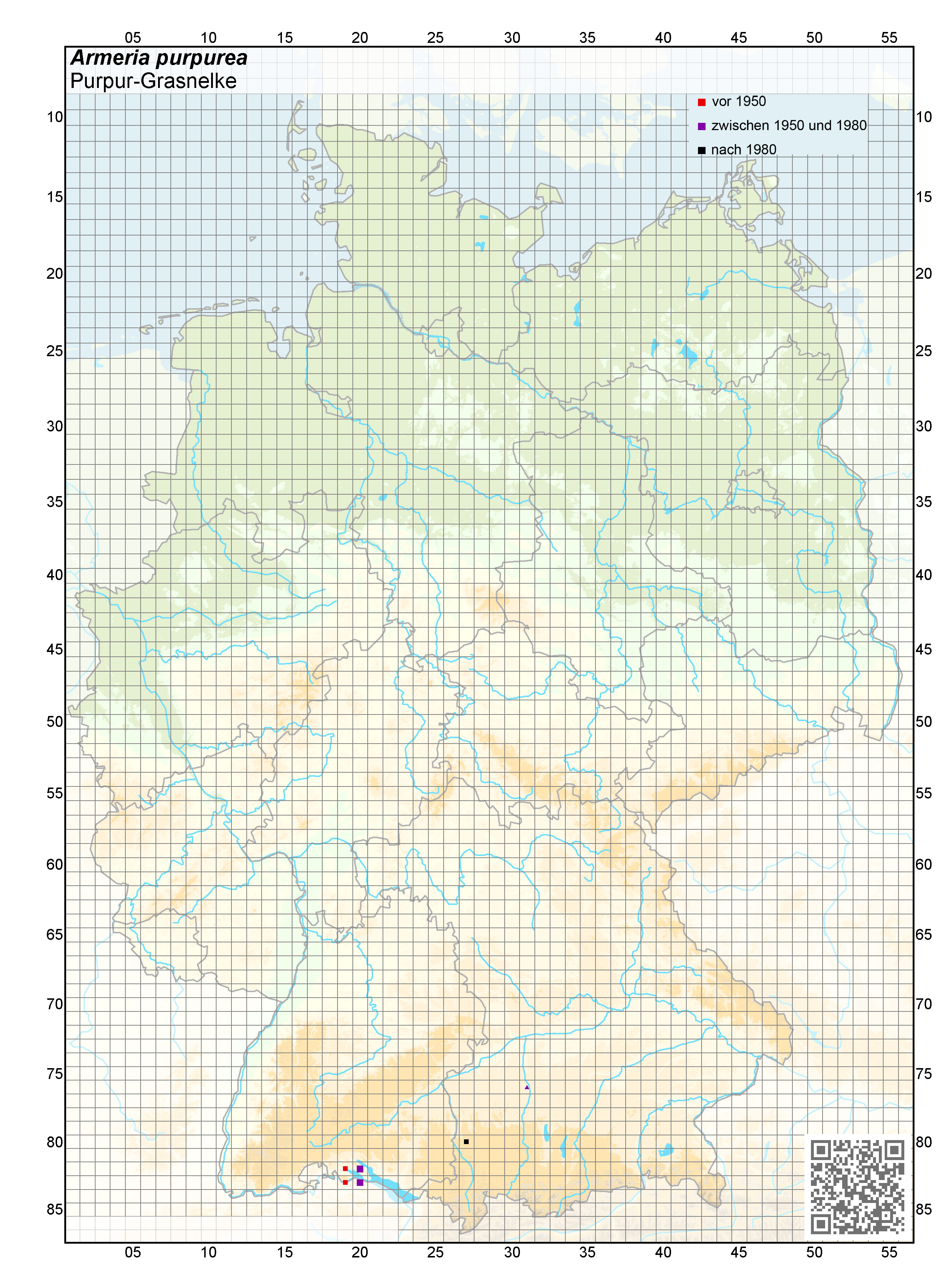| 10:29, 24. Jun. 2024 | Verbreitungskarte von Armeria purpurea (BfN) mit Legende.jpg (Datei) | 2,96 MB | ; Urheber : NetPhyD, BfN 2013 ; Ursprung : aus https://www.wildpflanzenschutz.uni-osnabrueck.de/verantwortungsarten/ entnommen Kategorie: Verbreitungskarten | 1 | |