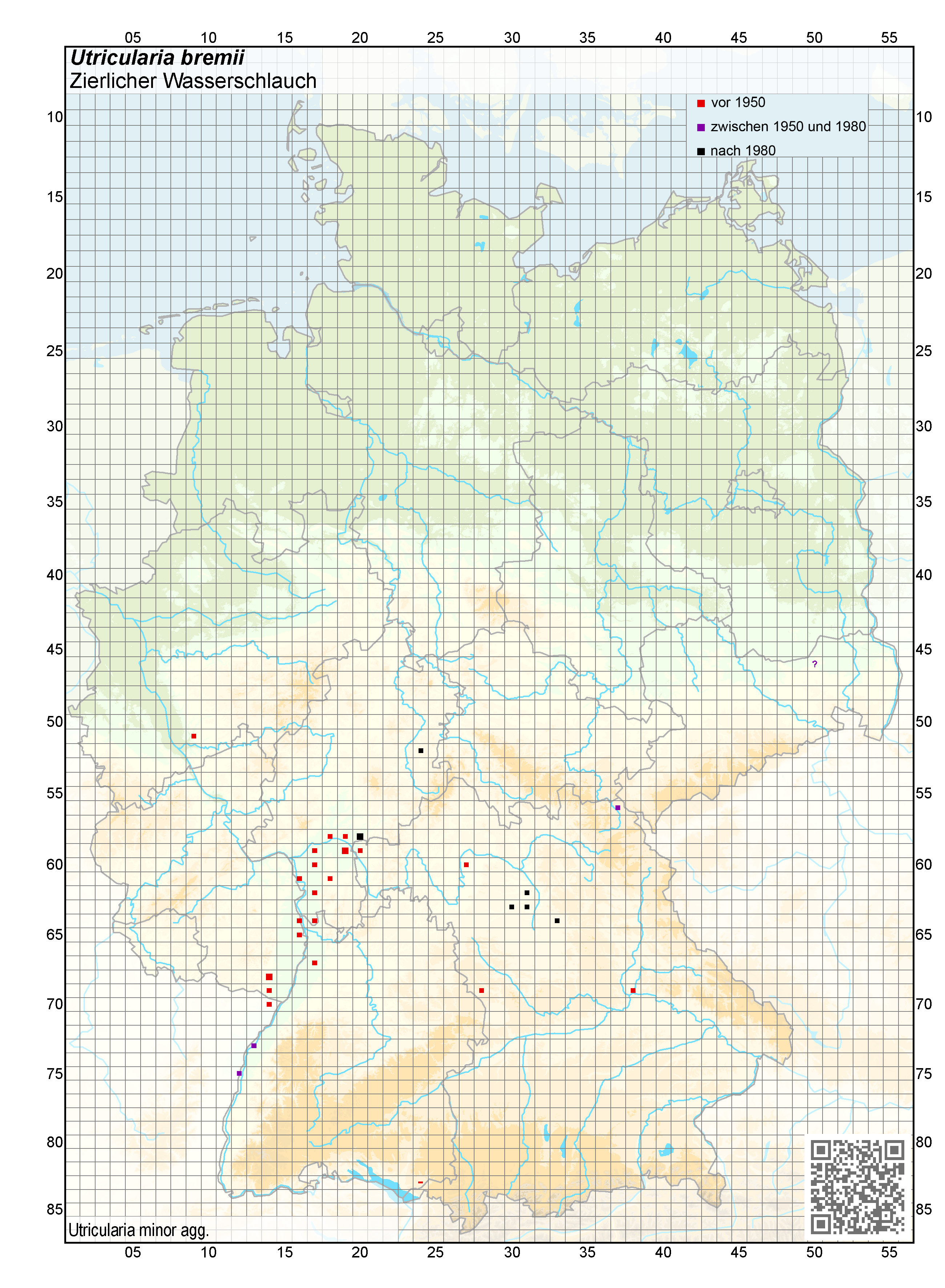 | 14:44, 30. Okt. 2024 | Verbreitungskarte von Utricularia bremii (BfN) mit Legende.jpg (Datei) | 2,3 MB | AndreasPlank | ; Urheber : NetPhyD, BfN 2013 ; Ursprung : aus https://www.wildpflanzenschutz.uni-osnabrueck.de/verantwortungsarten/ entnommen Kategorie: Verbreitungskarten Kategorie: Utricularia bremii | 1 | |