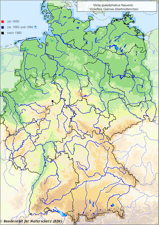 | 14:24, 31. Okt. 2024 | Verbreitungskarte von Viola guestphalica (BfN) mit Legende.png (Datei) | 739 KB | AndreasPlank | ; Urheber : NetPhyD, BfN 2013 ; Ursprung : von https://www.floraweb.de/webkarten/karte.html?taxnr=6525 erstellt und entnommen Kategorie: Verbreitungskarten Kategorie: Viola guestphalica | 1 | |